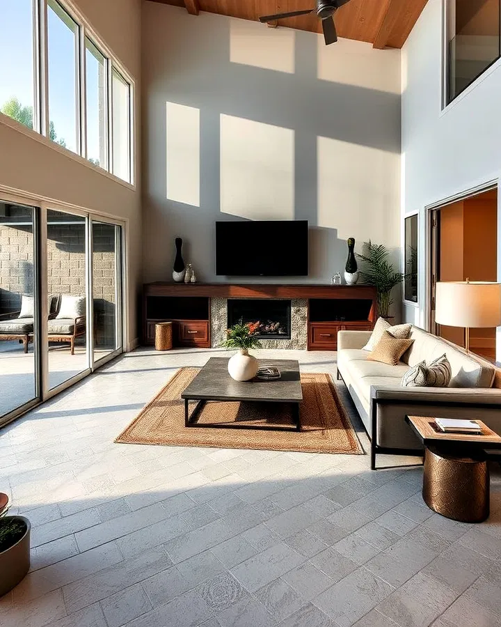 Now, introduce plants strategically to define zones and draw the eye upward without cluttering the floor.