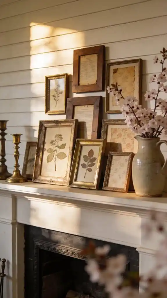 Display handwritten notes, postcards, or vintage paper pieces in frames.