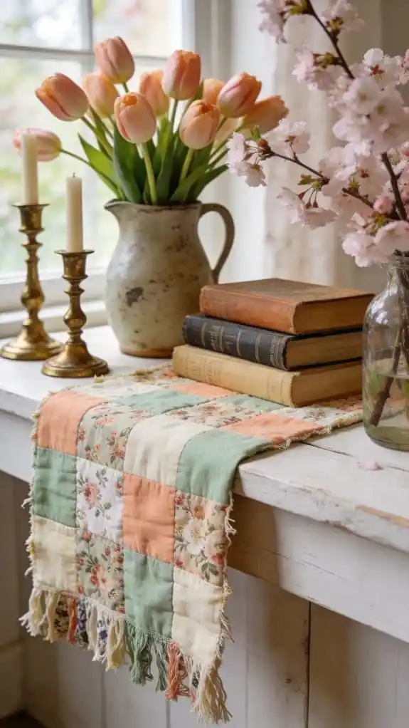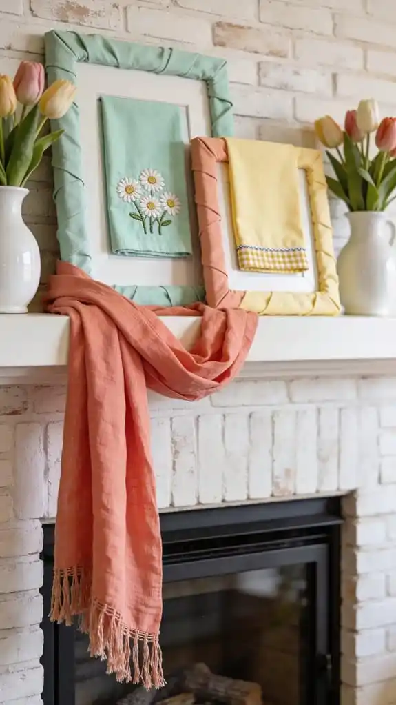 Lay a scarf, tea towel, or fabric piece across your mantel to introduce texture.