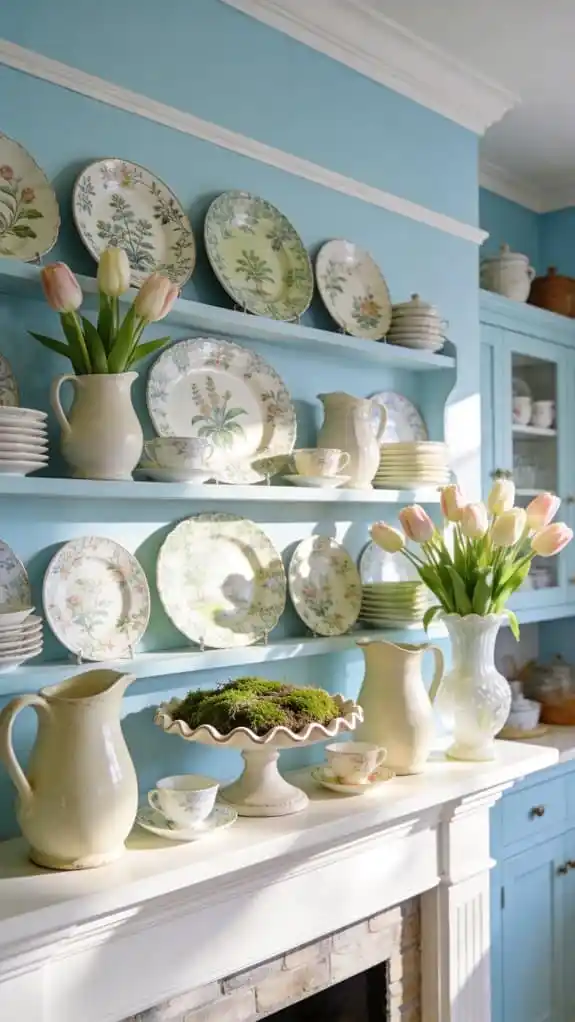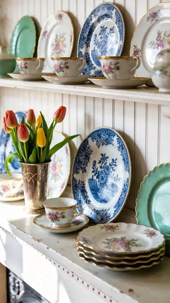Bring out plates, teacups, or serving pieces from storage and use them as decor.