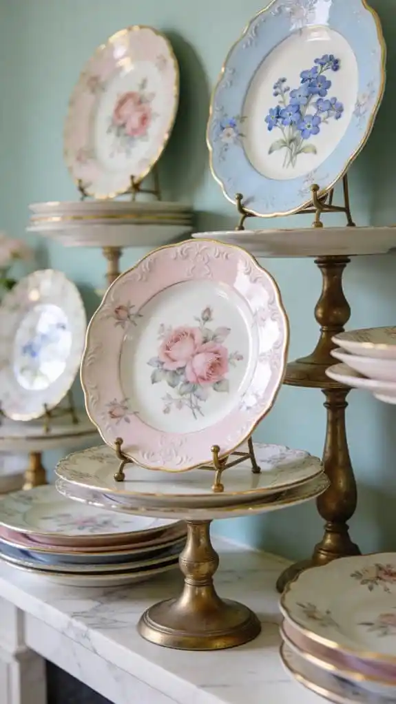 Use plate stands to layer different sizes and patterns.