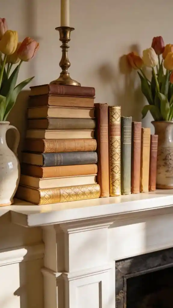 Books can act as both decor and foundation pieces. Stack them vertically to add height and create platforms for smaller decorative items.
