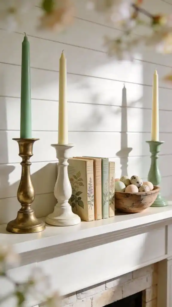 Candlesticks in varying heights create a gentle flow across your mantel.