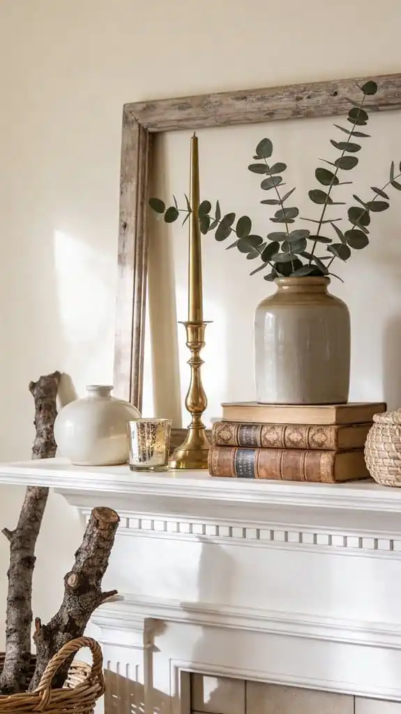 A well-styled mantel relies on contrast. Mix tall and short objects, smooth and textured surfaces, and structured and organic elements.